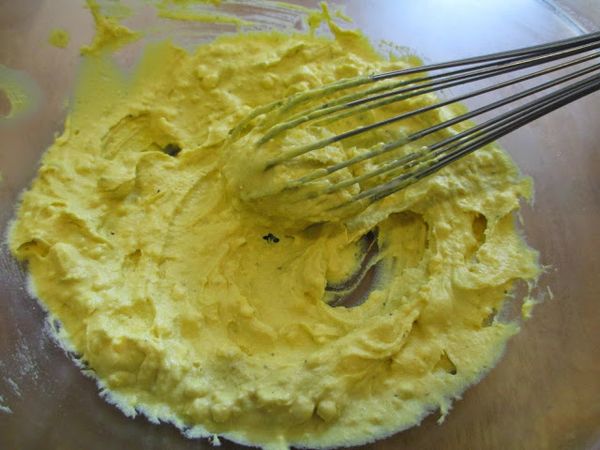 Cho phần lòng đỏ , thêm sốt Mayo, mù tạt màu vàng, hạt tiêu và muối. Sau đó trộn đều, nghiền trứng thật nhuyễn mịn