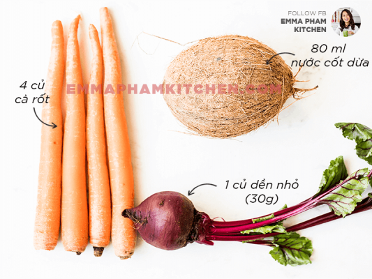 Cho cà rốt, củ dền vào máy ép và ép thành nước sau đó hoà với nước cốt dừa. Vị này sẽ tạo cho bản cảm giác béo ngậy đầy mê hoặc.
